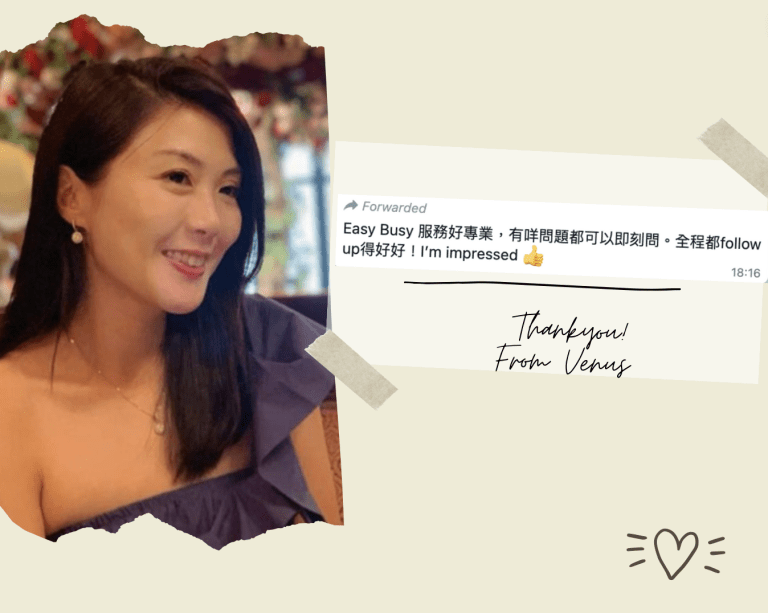 Easy Busy 服務好專業,有咩問題都可以即刻問。全程都follow up得好好!I’m impressed 👍